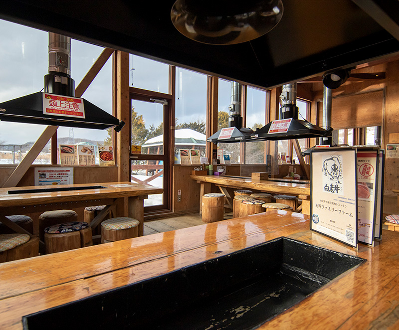 北海道白老町の森野に佇むログハウス調の焼肉レストラン「天野ファミリーファーム」は、世界でも高く評価されるサービスを兼ね備えた白老牛専門店です。1999年にレストランとしてオープン。以来、断熱性に優れた珪藻土(ダイアトマイト)による炭火焼肉で提供するスタイルを貫いています。